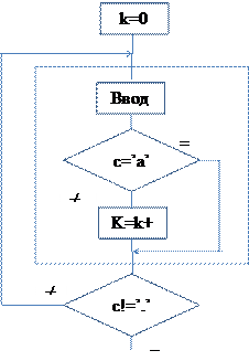 Пример: Дана последовательность символов, которая заканчивается точкой. Подсчитать, сколько раз в этой последовательности встречается буква ‘a’.