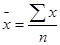 простая – равна сумме отдельных значений признака (х), деленной на общее число этих признаков (n):