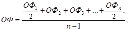 где ОФ1, ОФ2, ОФn - месячные (квартальные) данные о стоимости основных фондов (Ф - стоимость основных фондов на конец отчетного года или, что то же самое, на 01.01 следующего года);