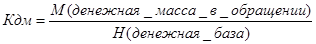 Для контроля за динамикой денежной массы и анализа объемов кредитных вложений коммерческих банков в экономику используется показатель, называемый денежным мультипликатором (Кдм)::