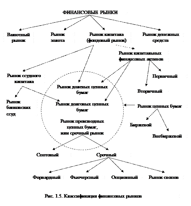 Финансовый рынок - это организованная система торговли финансовыми активами, что представлено на рис.1.5.