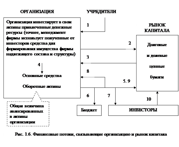 Важнейшим сегментом ранка капитала является рынок капитальных активов, к которому относятся долевых и долговых ценных бумаг. В наиболее общем виде схема движения денежных потоков, связывающих фирму и рынок капитала, представлена на рис. 1.6.