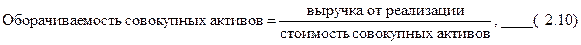 2.2.1. Оборачиваемость совокупных активов. Оборачиваемость совокупных активов равная единице обозначает, что каждая денежная единица, инвестируемая в совокупные активы обеспечивает одну денежную единицу выручки от реализации.