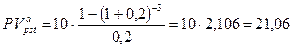 Определить текущую стоимость денежных поступлений в размере 10 млн. руб. в год, n = 3 года, r = 20 %.