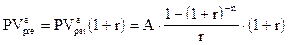 Приведенная стоимость аннуитета пренумерандо определяется по формуле (3.26).