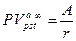 Аннуитет называется бессрочным, если денежные поступления продолжаются достаточно длительное время. Математически это означает, что n стремится к бесконечности. Бессрочный аннуитет также называют вечной рентой. В этом случае определение будущей стоимости бессрочного аннуитета не имеет смысла, а приведенная стоимость бессрочного аннуитета постнумерандо определяется по формуле (3.27).