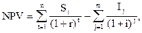 - приток (отток) денежных средств в год t; t = 1, 2,..., n; n - продолжительность проекта; r - коэффициент дисконтирования.