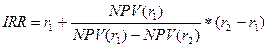 - ближайшие друг к другу значения коэффициента дисконтирования, удовлетворяющие условиям (в случае изменения знака функции у = f (r) с «+» на «-»):