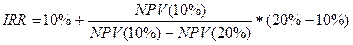 На первом этапе выберем два произвольных значения ставки дисконтирования – r = 10%, r = 20%.