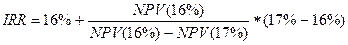 были ближайшие друг к другу значения коэффициента дисконтирования. Так как приблизительный IRR=16,6 значит