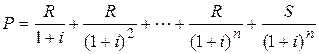 Допустим, величина S определяет единовременный взнос в конце срока ренты. Современная стоимость этой величины будет равна
