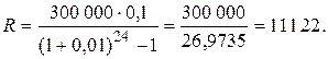 За 2 года необходимо накопить сумму S =300 000. Определить величину ежемесячного платежа R при условии, что проценты начисляются в конце каждого месяца по сложной ставке в 12 % годовых.