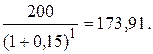 Доход 200 в конце первого года имеет современную стоимость