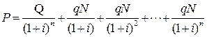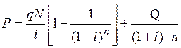 Предположим, что облигация номинала N приобретена за n лет до погашения. Проценты по облигации выплачиваются в конце каждого года по купонной ставке q. Рыночная доходность равна i %годовых. Выкупная цена равна Q, Q ¹ N.