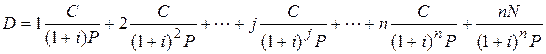 Каждое слагаемое равно произведению времени j выплаты купона на величину