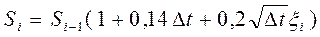 =0,14, σ = 0,2, и в начальный момент цена акции S 0 = 20.