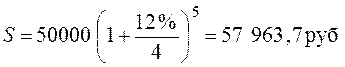 В банк на 5 лет помещен вклад в размере 50 000 руб. под 12 % годовых с ежеквартальным начислением. Какую сумму получит вкладчик через 5 лет?