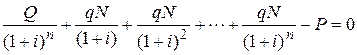 Допустим, что облигация выкупается по цене Q ¹ P. К упон выплачиваются в конце каждого года по ставке q. Доходы от облигации образуют ренту и состоят из выкупной цены при погашении облигации и периодических поступлений по купонам.Если облигация приобретена по цене P, то рента доходов по облигации и цена образуют инвестиционный проект, в котором цена P играет роль инвестиций.