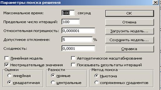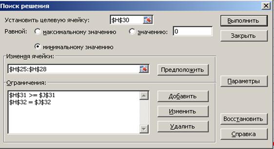 · Заполним окна Поиска решения, как показано на рис. 7.2 и 7.3.