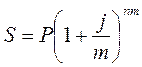 Пусть годовая процентная ставка равна j и период начисления – m раз в году. Следовательно, каждый раз проценты начисляются по ставке j/m. Формула наращения будет иметь вид