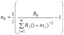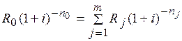 Пусть размер консолидированного платежа R 0 известен. Необходимо определить срок n 0 его выплаты. Для этого запишем равенство современных значений исходного и консолидированного обязательств. Для схемы простых процентов получаем равенство