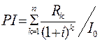 Индексом рентабельности PI называется отношение приведенной стоимости будущих доходов к сумме первоначального вложения, то есть