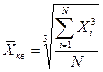 Аналогично, если по условиям задачи необходимо сохранить неизменной сумму кубов индивидуальных значений признака при их замене на среднюю величину, мы приходим к средней кубической величине, имеющей вид: