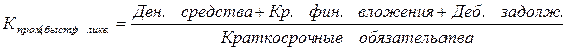 2. Промежуточный коэффициент ликвидности – отношение ликвидных средств первых двух групп к общей сумме краткосрочных долгов предприятия.