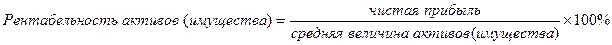 показывает, сколько прибыли получило предприятие с 1 рубля вложенного актива.