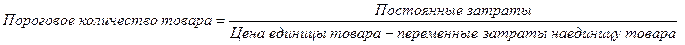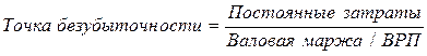 Точка безубыточности это объем продаж, при котором выручка равна суммарным издержкам или объем продаж, при котором валовая маржа равна постоянным издержкам.