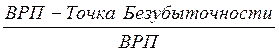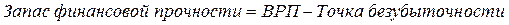 Важной характеристикой успешной работы предприятия является величина запаса финансовой прочности, которая в относительной форме определяется в виде разности между запланированным объемом реализации и точкой безубыточности