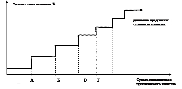 Обеспечение эффективного формирования капитала предприятия требует постоянной оценки его предельной стоимости. Под предельной стоимостью капитала понимается уровень стоимости каждой новой его единицы, дополнительно привлекаемой предприятием.