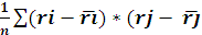 | Covij | Covij = ((0,1-0,1425)* (0,12-0,1475) + (0,16-0,1425)* (0,18-0,1475) + (0,14-0,1425)* (0,14-0,1475) + (0,17-0,1425)* (0,15-0,1475)) / 4 = 0,0004562 |