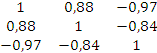 Коэффициенты корреляции также можно представить в виде матрицы: