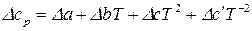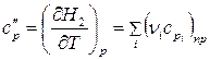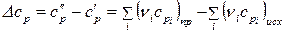 , равен разности сумм мольных теплоемкостей продуктов реакции и исходных веществ с учетом стехиометрических коэффициентов.