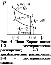 При рассмотрении цикла Карно (рис. 5), установлена теорема Карно–Клаузиуса: коэффициент полезного действия (