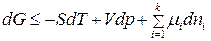 компонентной системы, с учетом изменения числа моль компонентов, участвующих в физико-химическом процессе, уравнение (83) для изменения энергии Гиббса примет вид: