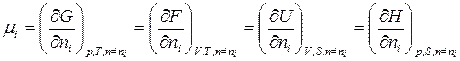Химический потенциал можно выразить через частные производные и других термодинамических потенциалов