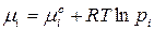 а) На основе термодинамических представлений получим уравнение для химического потенциала индивидуального идеального газа. Из уравнения