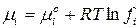 Льюис и Рендал связали термодинамическую активность с концентрацией компонентов в растворе через соответствующий коэффициент активности: