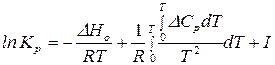 С помощью III закона термодинамики можно показать, что для реакций, протекающих в конденсированных системах константа интегрирования