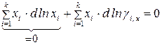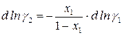 Уравнение (141) лежит в основе любой современной теории реальных растворов. Устанавливает взаимосвязь между коэффициентами активности компонентов в растворе. Например, для бинарной системы:
