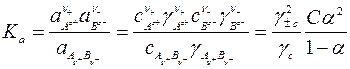 – константа равновесия, которая зависит от температуры и природы растворителя, но не зависит от концентрации электролита.