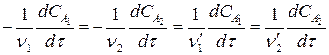 Поскольку в реакциях вещества участвуют в стехиометрических соотношениях, то изменения концентраций каждого из реагентов также связаны стехиометрическими соотношениями. Тогда для реакции