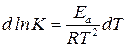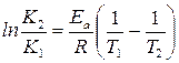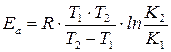 (224) – уравнения Аррениуса в интегральной форме. Из (224) можно выразить энергию активации: