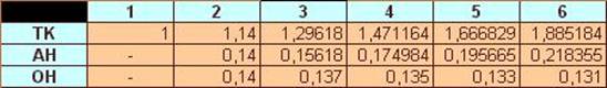 АН - абсолютное нарастание коэффициентов;