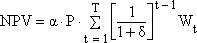 Обозначим P вероятность успешного нахождения работы после получения образования, тогда формула чистого дисконтированного дохода при осуществлении индивидом инвестиций в собственное образование примет вид: