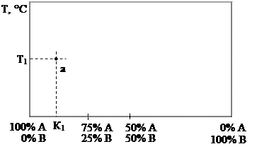 Каждая точка диаграммы состояния отражает фазовый состав сплава определенной концентрации, находящегося при определенной температуре. Так точка а отражает состояние сплава с концентрацией компонентов К1, находящегося при температуре Т1. Необходимо отметить, что все состояния сплава, отражаемые диаграммой, являются устойчивыми, равновесными, обладающими при данных условиях минимальной свободной энергией. По этой причине диаграммы состояния иногда называют равновесными диаграммами или диаграммами фазового равновесия.