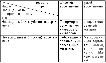 Характеристика магазинов в зависимости от товарного ассортимента