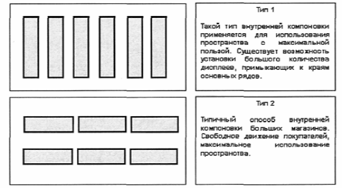 Рисунок 3.7. Типы расположения торгового оборудования внутри торгового зала14